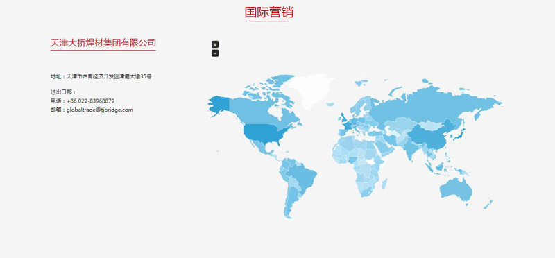 大橋焊材在全球擁有龐大的營(yíng)銷(xiāo)體系,僅國(guó)內(nèi)就有三十多個(gè)營(yíng)銷(xiāo)中心。如果能讓訪客清晰直觀的了解各個(gè)營(yíng)銷(xiāo)中心的聯(lián)系方式,成為大橋最希望解決的問(wèn)題。如果采用傳統(tǒng)的文本形式,不僅破壞網(wǎng)站的整體美感,也不利于訪客的快速查找。對(duì)此,我司解決方案如下:在中國(guó)地圖和世界地圖上,對(duì)所有的營(yíng)銷(xiāo)中心進(jìn)行標(biāo)記,訪客只需晃動(dòng)鼠標(biāo),就能彈出對(duì)應(yīng)區(qū)域的營(yíng)銷(xiāo)中心詳細(xì)信息。