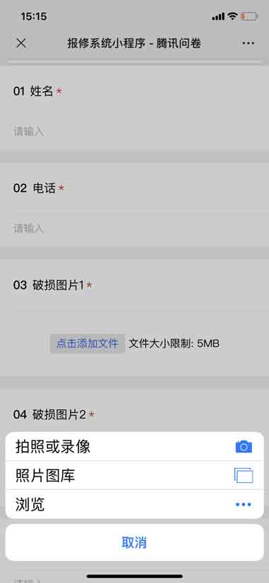本公眾號(hào)是天津市武清體育局項(xiàng)目,用戶可以在線報(bào)名參加體育局的各種活動(dòng),參與問(wèn)卷調(diào)查,并可以對(duì)受損設(shè)備器材進(jìn)行在線報(bào)修。報(bào)修圖片可以直接拍照上傳也可以調(diào)用本地圖庫(kù);用于填寫的表單可以緩存,如果沒(méi)有提交就退出的話將在下一次進(jìn)入頁(yè)面時(shí)自動(dòng)加載。