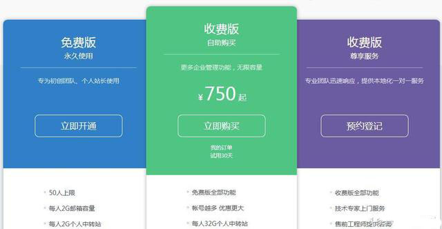 無限郵箱容量,收費(fèi)版不限容量,免費(fèi)版2G容量