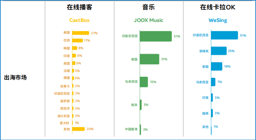 從目前的數(shù)據(jù)來(lái)看,音頻類賽道出海企業(yè)并不多,主要以大廠為主;出海市場(chǎng),也大多集中在東南亞。