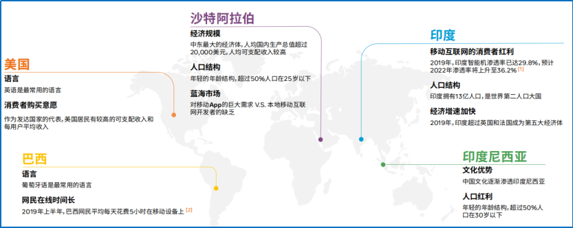 除了營(yíng)收喜人,用戶下載市場(chǎng)分布也廣泛,歐美、日韓、中東、拉美、東南亞、印度等全球熱門市場(chǎng)都有視頻 APP 的身影。