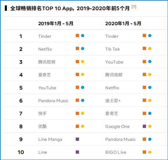 僅以筆者關(guān)注的社交娛樂(lè)賽道為例,2020 年 LGBTQ 交友應(yīng)用 Blued、中東語(yǔ)音社交平臺(tái) Yalla 先后成功在美上市;BIGO LIVE 和 TikTok 兩款社交娛樂(lè) APP 多次位列中國(guó)出海應(yīng)用月收入 30 強(qiáng),與游戲爭(zhēng)輝;另外,根據(jù) Facebook 聯(lián)合艾瑞咨詢共同發(fā)布的《中國(guó)泛娛樂(lè)出海機(jī)遇洞察白皮書》(以下簡(jiǎn)稱白皮書)也顯示,2020 年 1-5 月全球非游戲 APP 暢銷排名 Top10 APP 中,除 Google One 的余下 9 款全部是社交娛樂(lè) APP。
